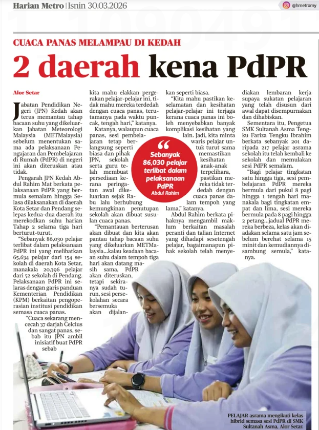 Bernama (2026) 2 daerah kena PdPR. Harian Metro. |