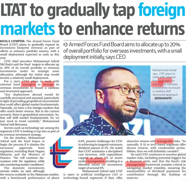 Bernama (2026) LTAT to Gradually Tap Foreign Markets to Enhance Returns. The Sun (Malaysia). |