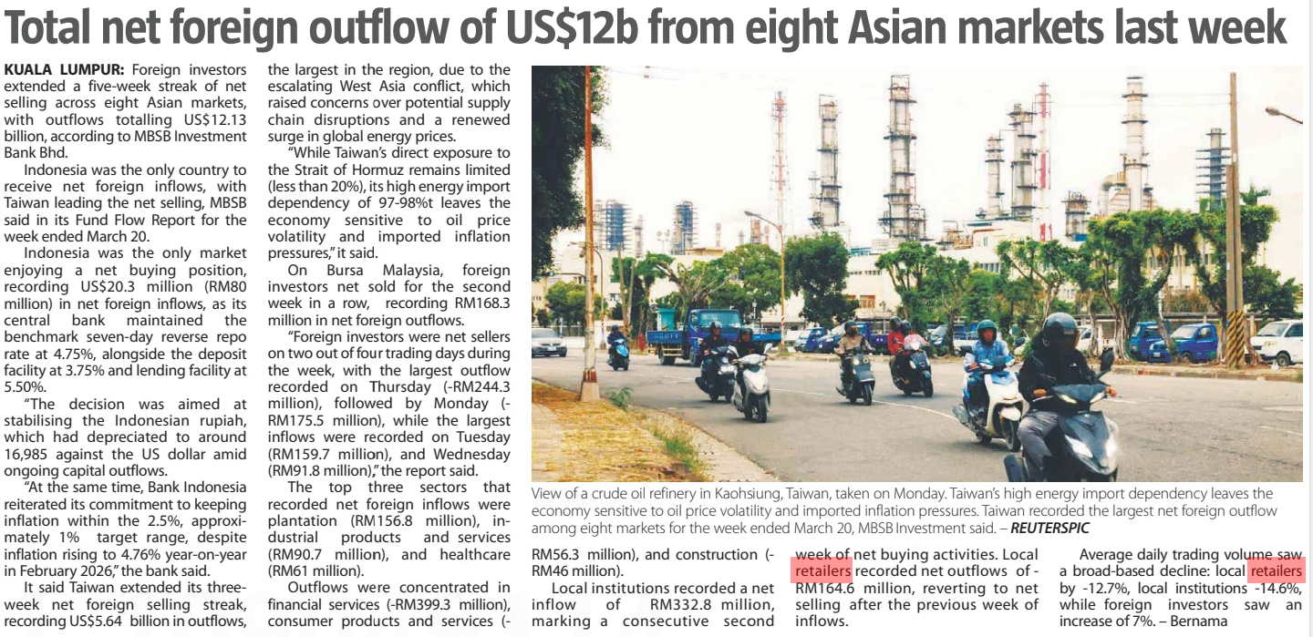 Bernama (2026) Total Net Foreign Outflow of US$12b from Eight Asian Markets Last Week. The Sun (Malaysia). |