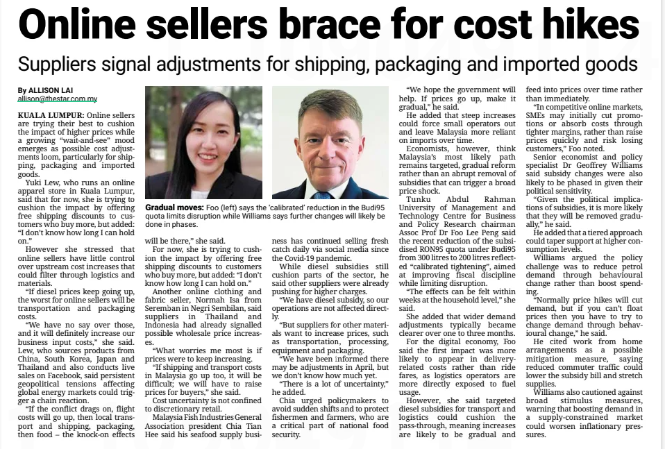 Lai, Allison (2026) Online seller brace for cost hikes. The Star. |