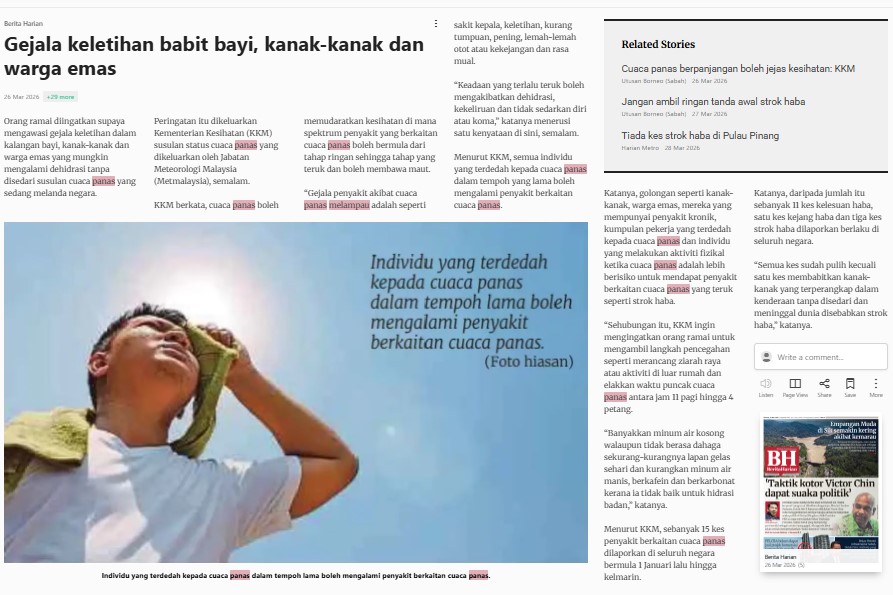 Frankie Junau (2026) Gejala Keletihan Babit Bayi, Kanak-Kanak Dan Warga Emas. Berita Harian. |