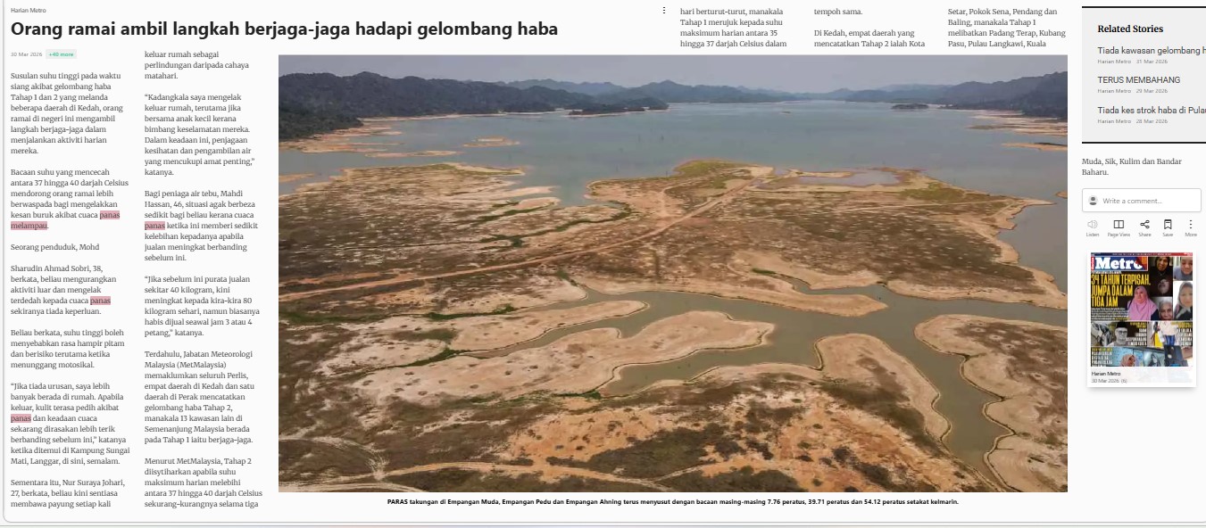 Bernama (2026) Orang Ramai Ambil Langkah Berjaga-Jaga Hadapi Gelombang Haba. Harian Metro. |