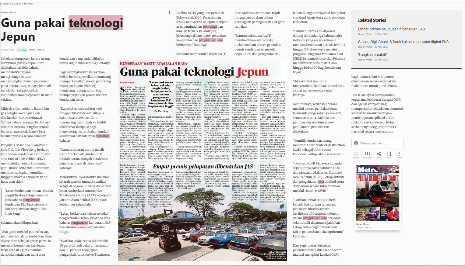 Bernama (2026) Guna pakai teknologi Jepun. Harian Metro. |