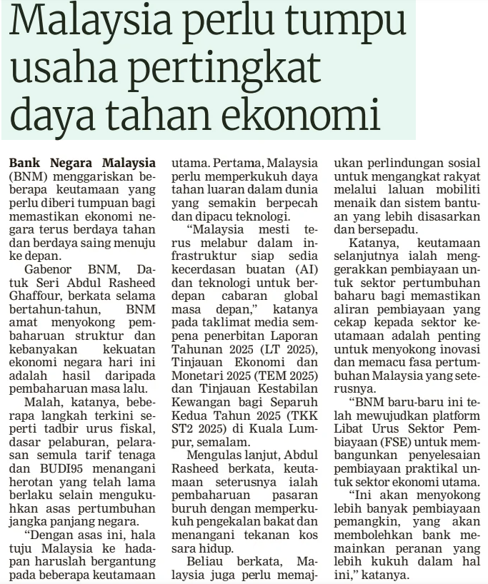 Mahanum Abdul Aziz (2026) Malaysia Perlu Tumpu Usaha Pertingkat Daya Tahan Ekonomi. Berita Harian. |