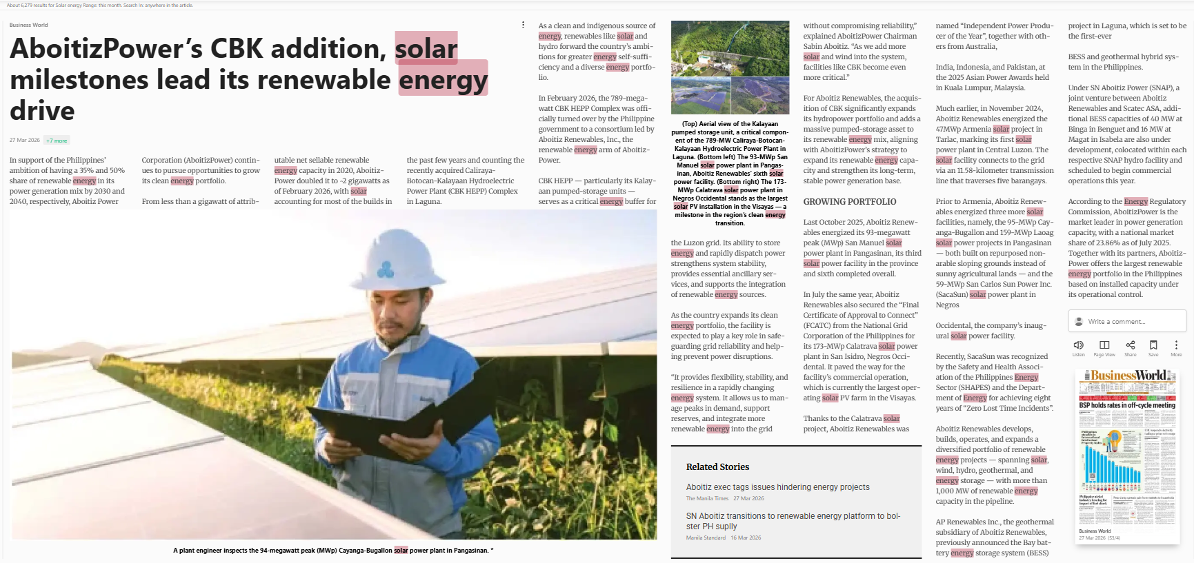 Bernama (2026) AboitizPower’s CBK addition, solar milestones lead its renewable energy drive. Business World. |