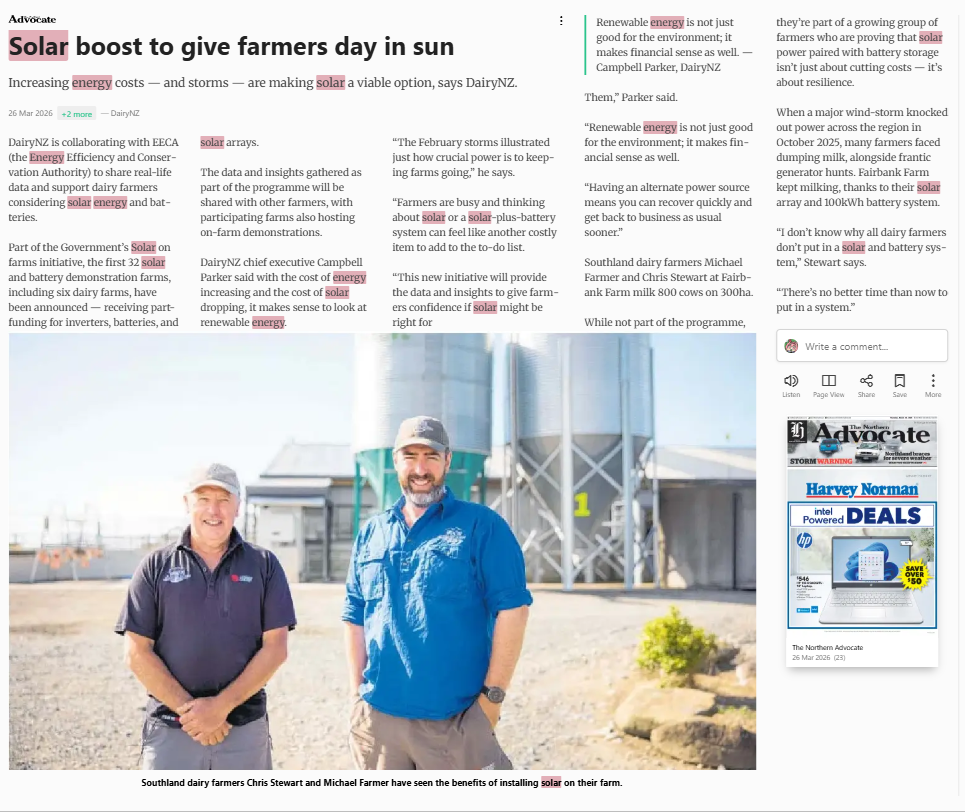 Bernama (2026) Solar boost to give farmers day in sun. The Northern Advocate. |