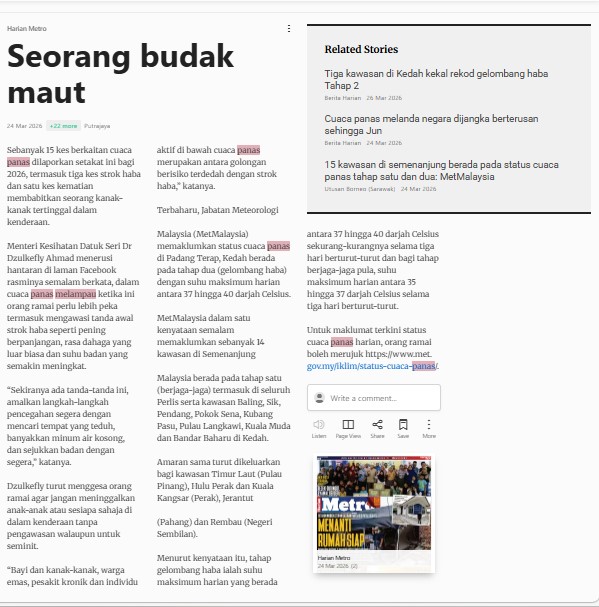 Bernama (2026) Seorang Budak Maut. Harian Metro. |