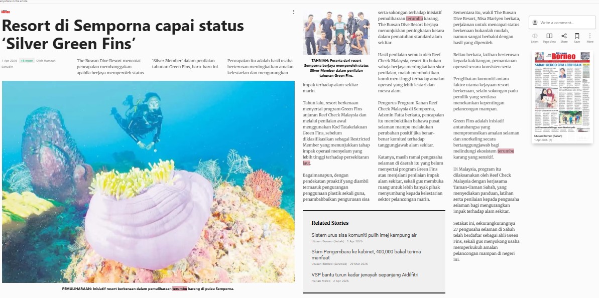 Bernama (2026) Rumpai Laut Sabah: Lima Potensi Dalam Kesihatan Dan Kecantikan. Utusan Borneo (Sabah). |