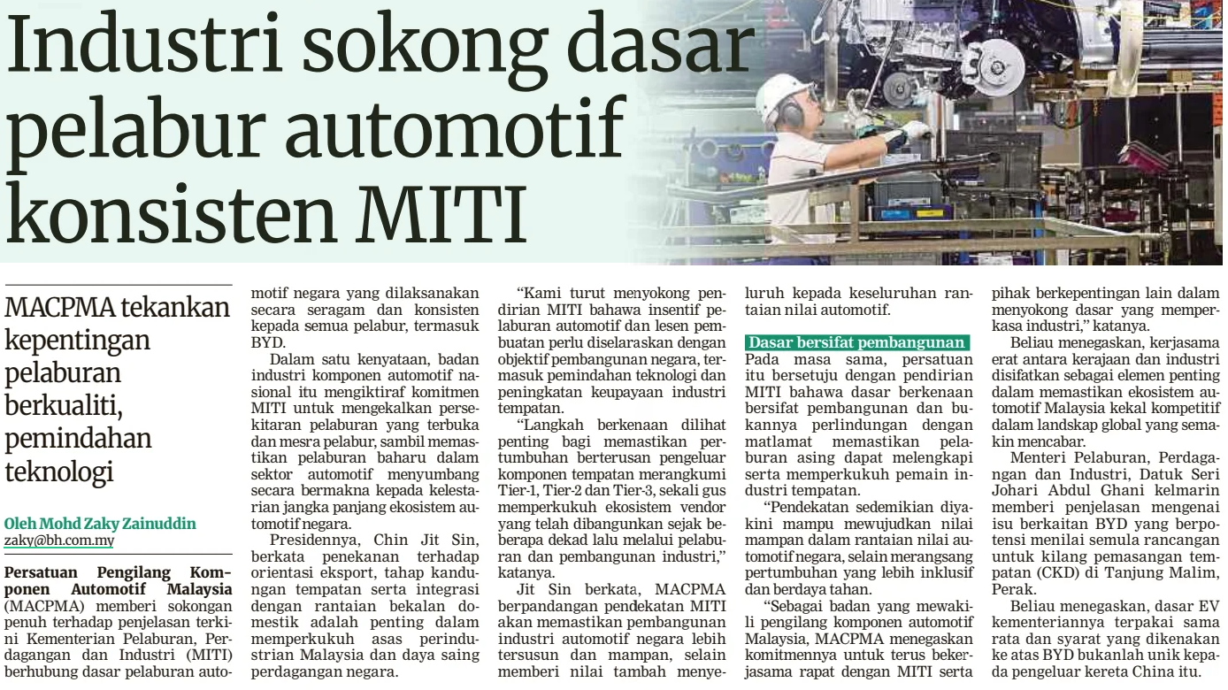 Zaky Zainuddin (2026) Industri Sokong Dasar Pelabur Automotif Konsisten MITI. Berita Harian. |