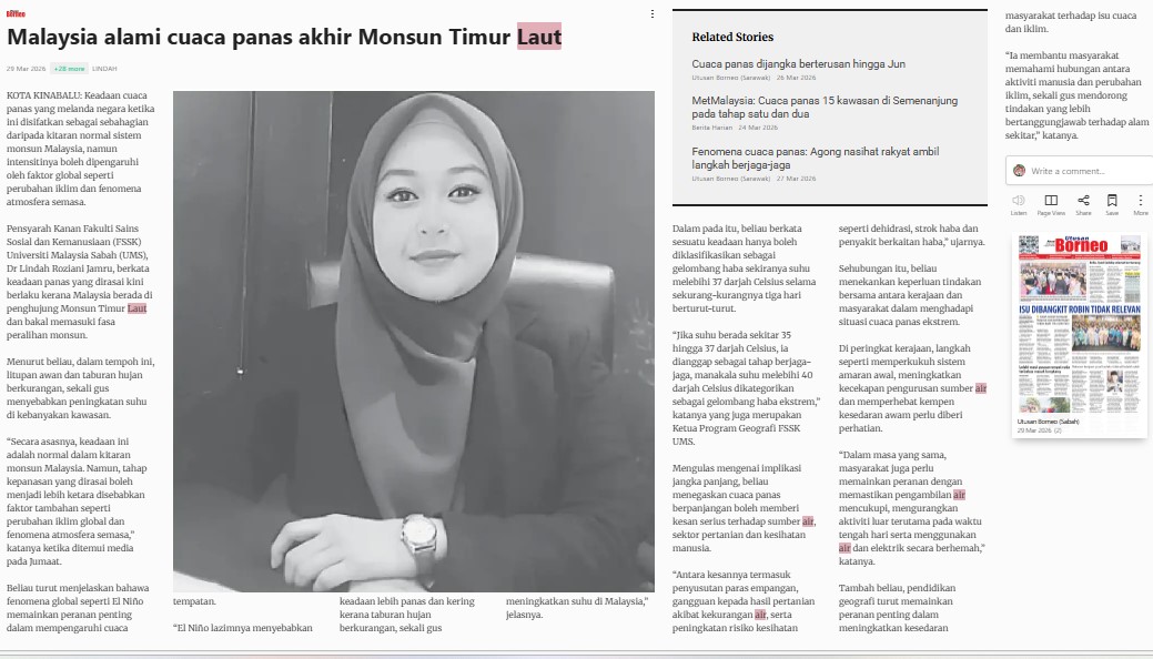 Bernama (2026) Malaysia Alami Cuaca Panas Akhir Monsun Timur Laut. Utusan Borneo (Sabah). |