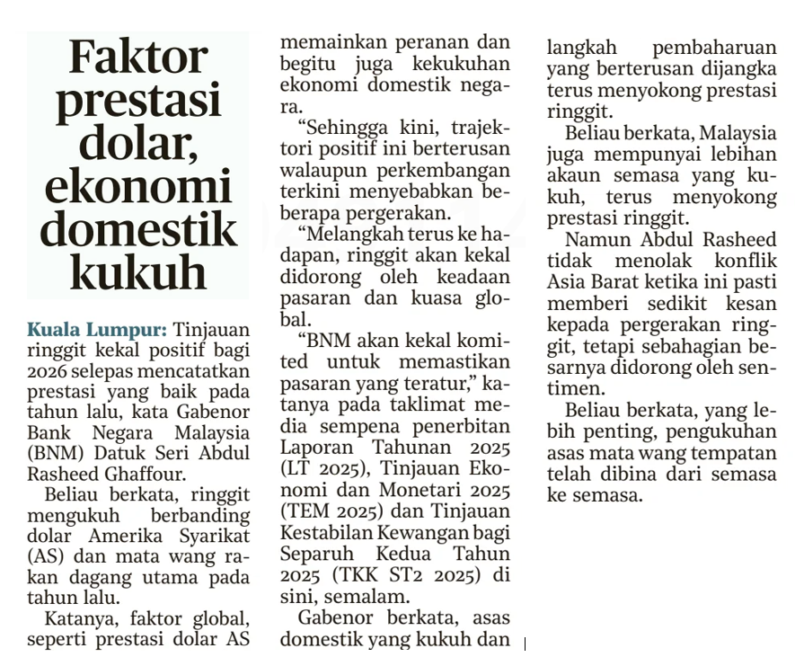 Bernama (2026) Faktor Prestasi Dolar, Ekonomi Domestik Kukuh. Harian Metro. |