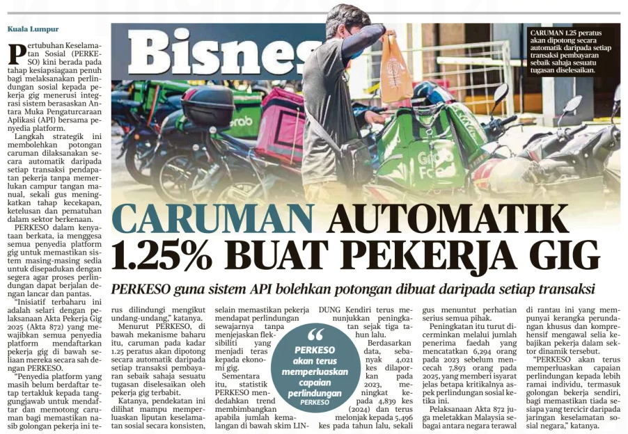 Bernama (2026) Caruman Automatik 1.25% Buat Pekerja GIG. Harian Metro. |