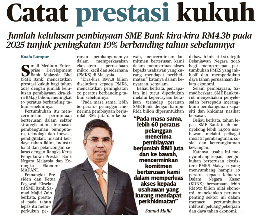 Bernama (2026) Jumlah Kelulusan Pembiayaan SME Bank Kira-Kira RM4.3b Pada 2025 Tunjuk Peningkatan 19% Berbanding Tahun Sebelumnya. Harian Metro. |