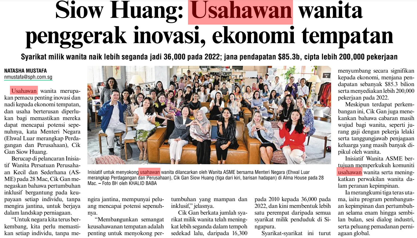 Natasha Mustafa (2026) Siow Huang: Usahawan Wanita Penggerak Inovasi, Ekonomi Tempatan. Berita Minggu. |