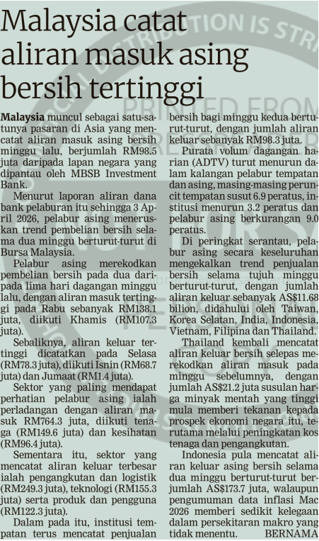 Bernama (2026) Malaysia Catat Aliran Masuk Asing Bersih Tertinggi. Berita Harian. |
