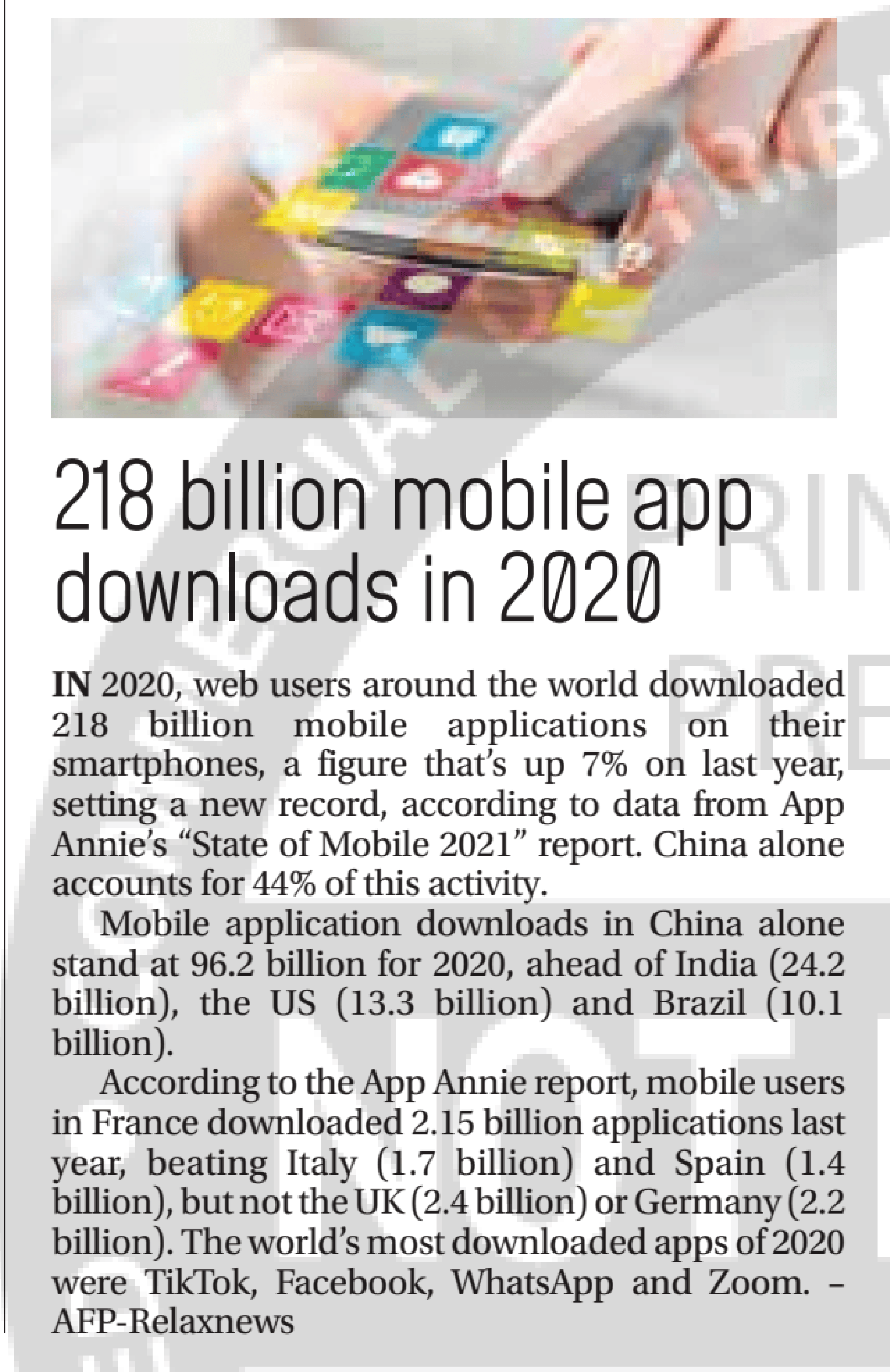 The Sun (Malaysia) (2021) 218 billion mobile app downloads in 2020. The Sun Malaysia. |