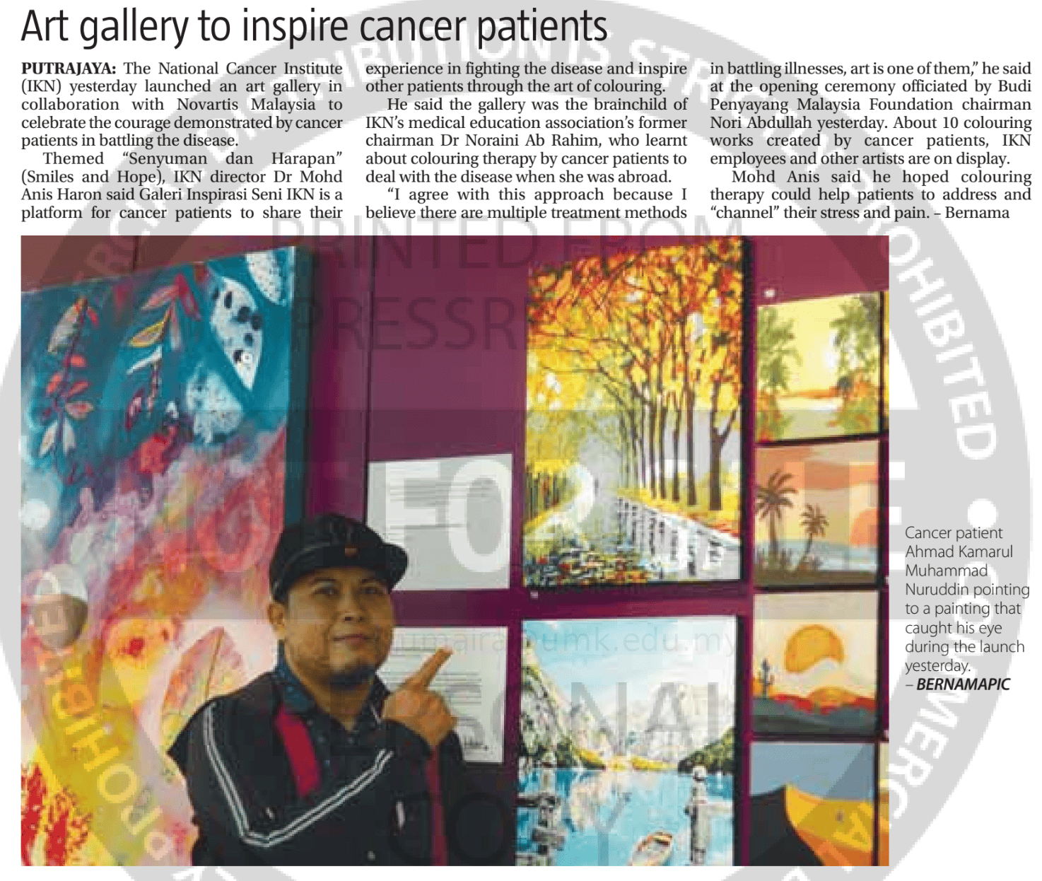 Bernama (2022) Art gallery to inspire cancer patients. The Sun Malaysia. |