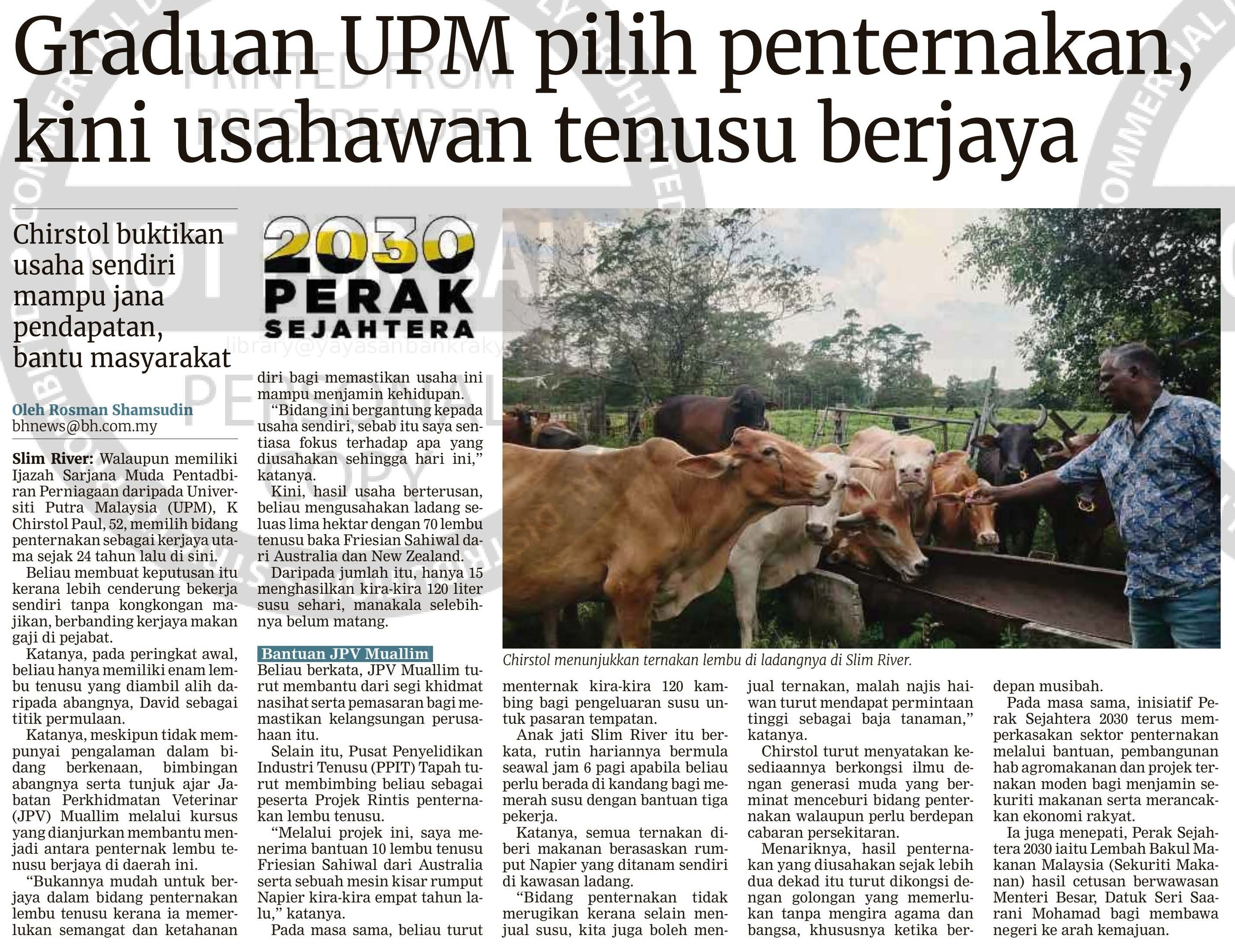 Rosman Shamsudin (2026) Graduan UPM pilih penternakan, kini usahawan tenusu berjaya. Berita Harian. |
