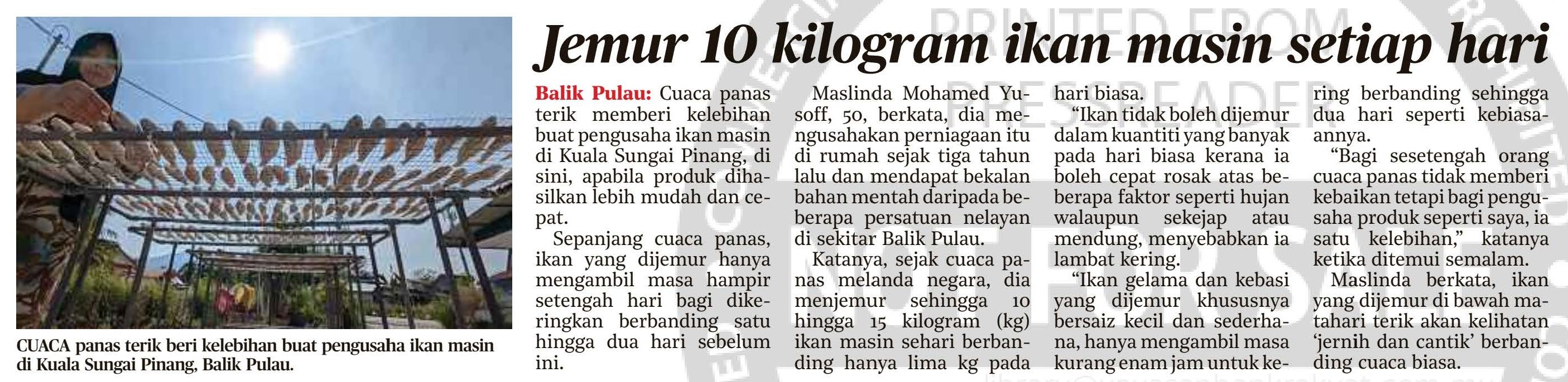Harian Metro (2026) Jemur 10 kilogram ikan masin setiap hari. Harian Metro. |