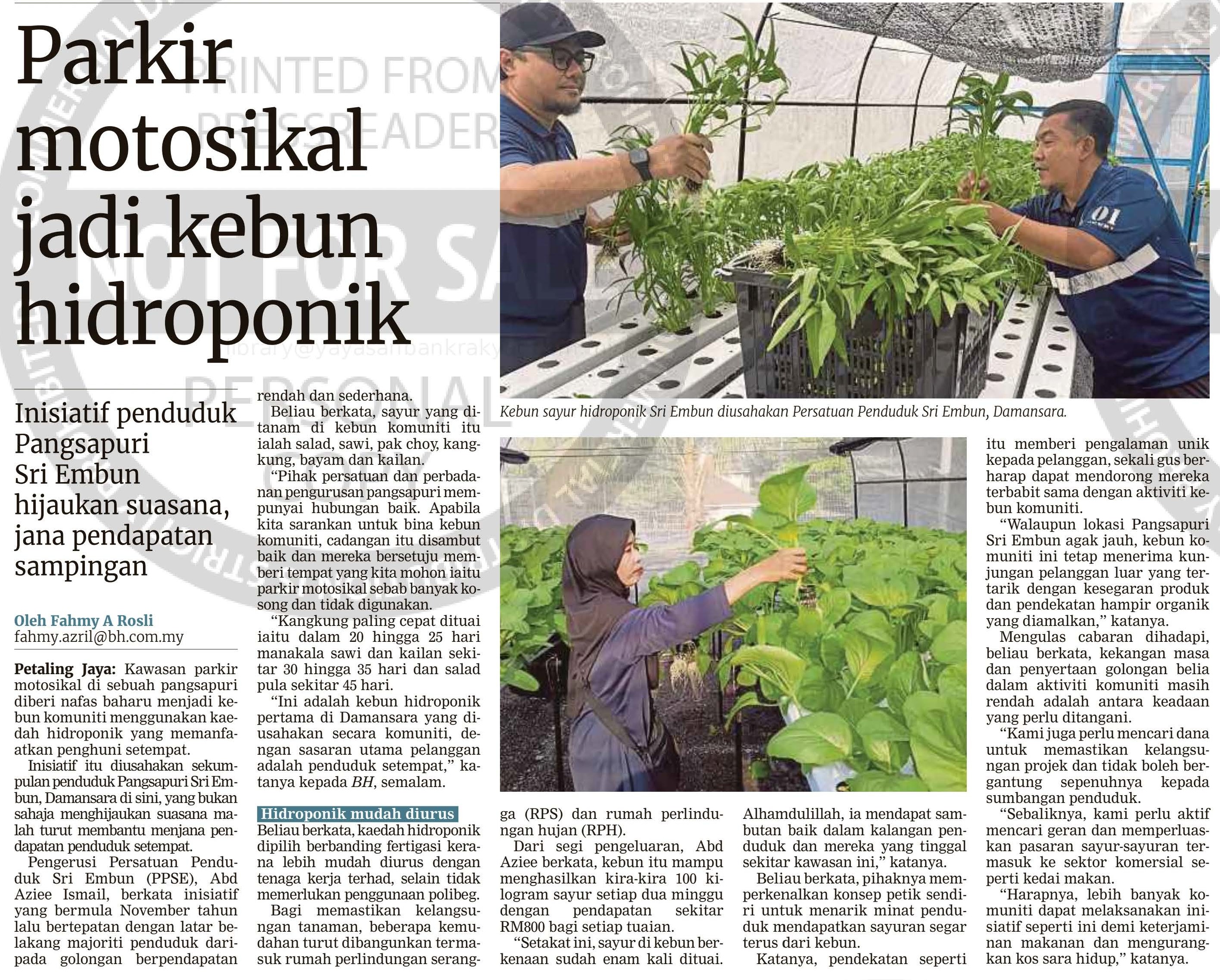 Fahmy A Rosli (2026) Parkir motosikal jadi kebun hidroponik. Berita Harian. |