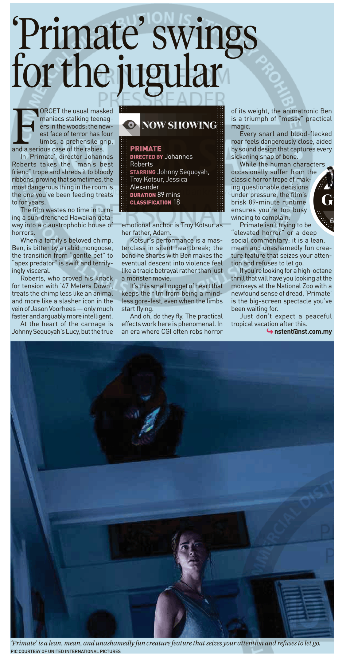 New Straits Times (2026) ‘Primate’ swings for the jugular. New Straits Times. |