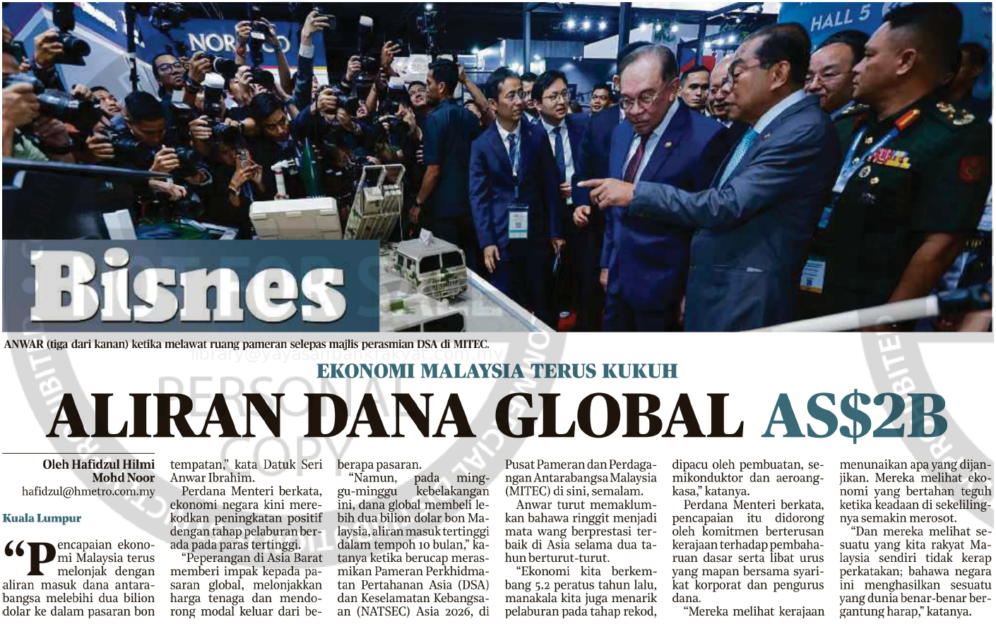 Hafidzul Hilmi Mohd Noor (2026) Ekonomi Malaysia Terus Kukuh Aliran Dana Global As$2b. Harian Metro. |