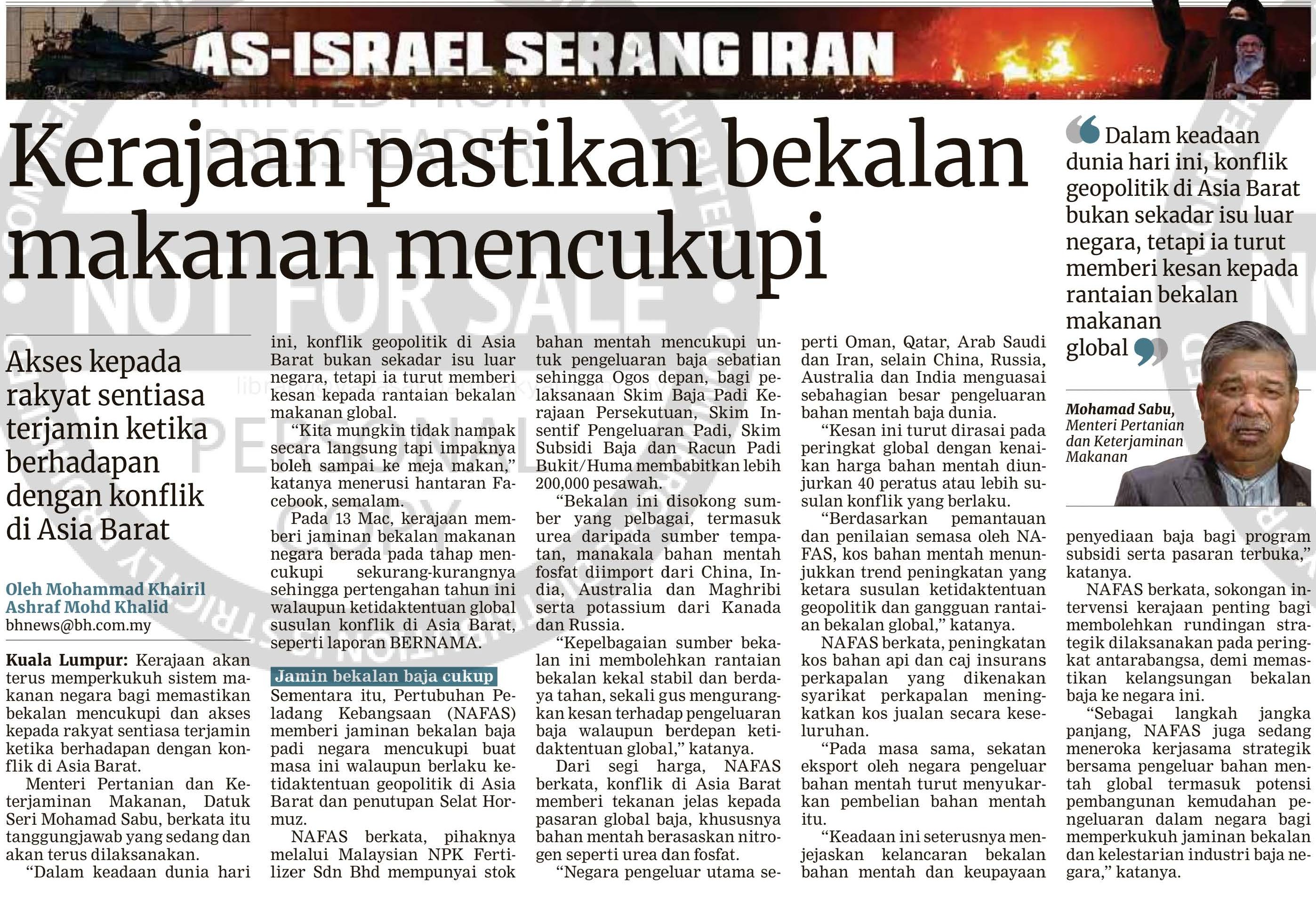 Mohammad Khairil Ashraf Mohd Khalid (2026) Kerajaan pastikan bekalan makanan mencukupi. Berita Harian. |