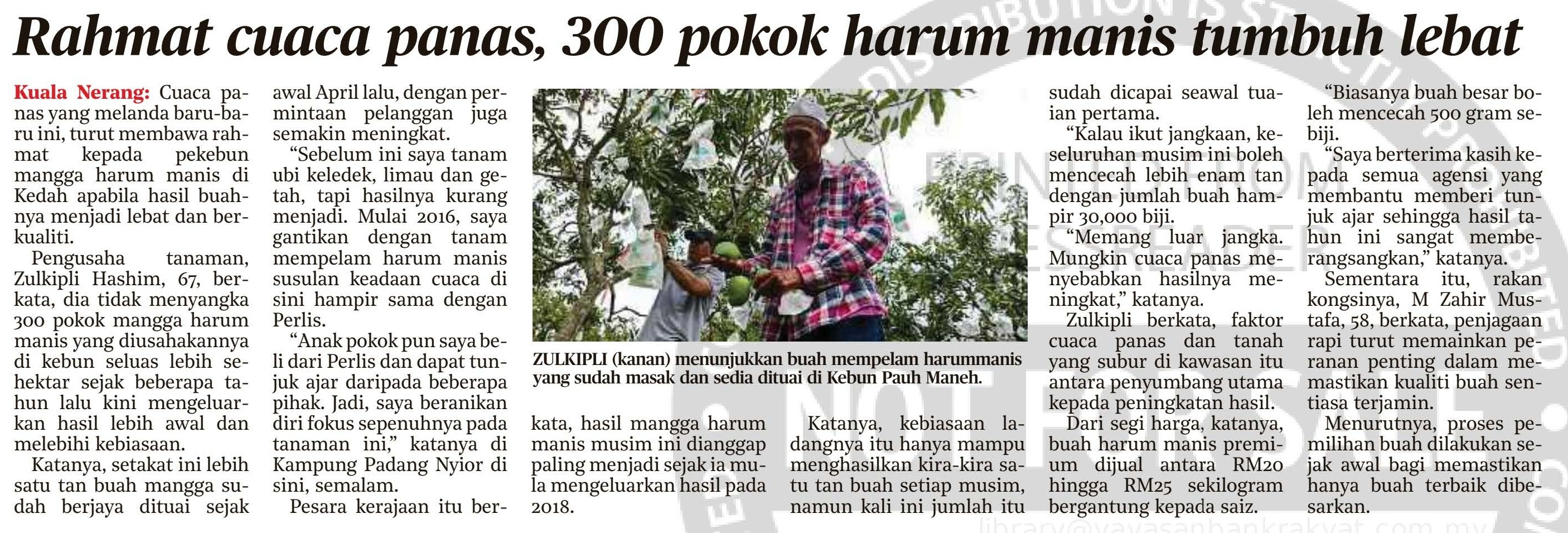 Harian Metro (2026) Rahmat cuaca panas, 300 pokok harum manis tumbuh lebat. Harian Metro. |
