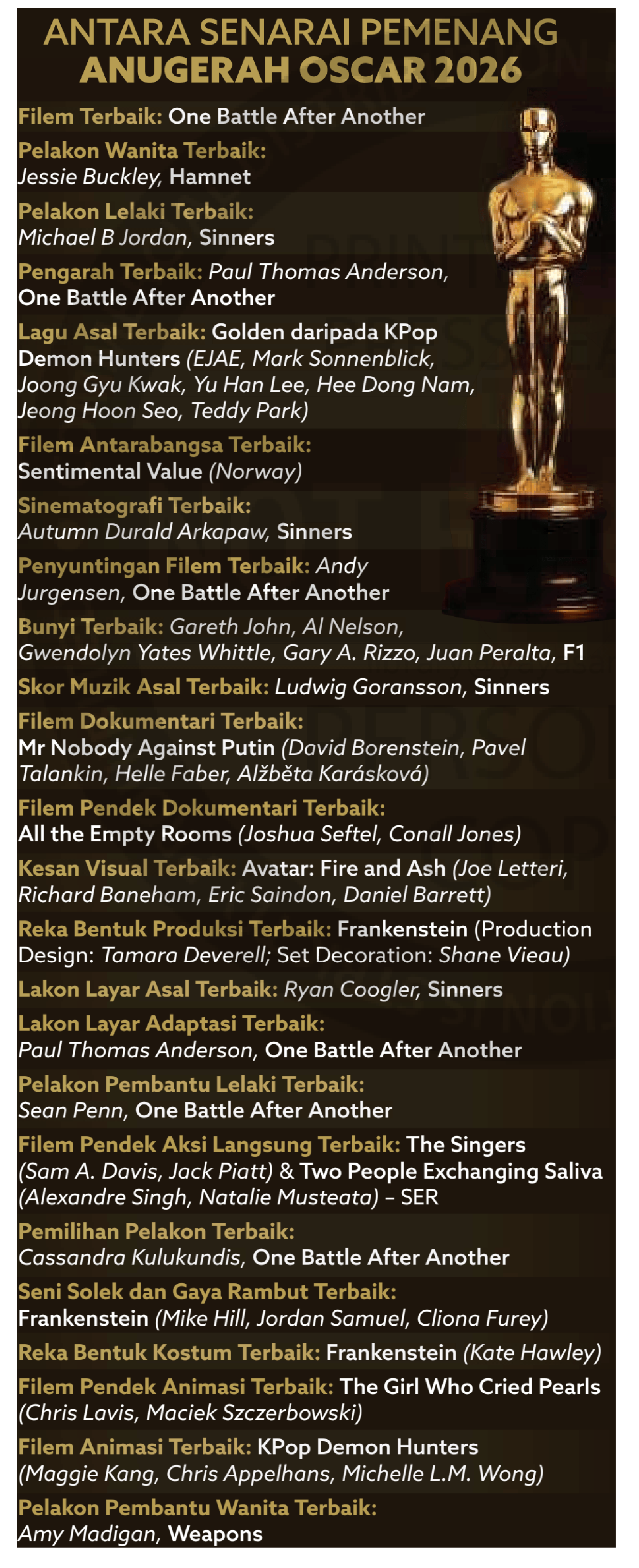 Harian Metro (2026) ANTARA SENARAI PEMENANG ANUGERAH OSCAR 2026. Harian Metro. |