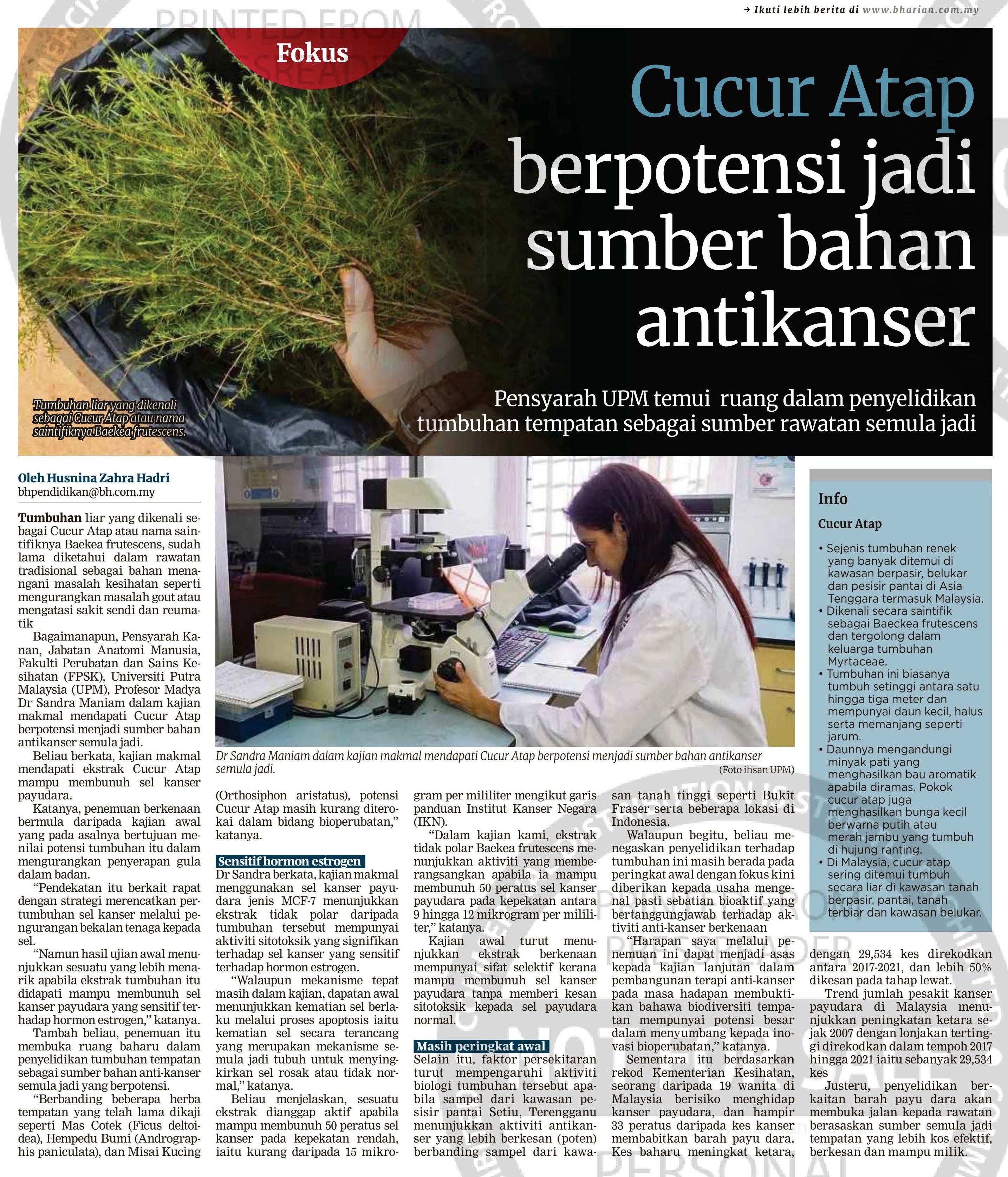 Husnina Zahra Hadri (2026) Cucur Atap berpotensi jadi sumber bahan antikanser. Berita Harian. |