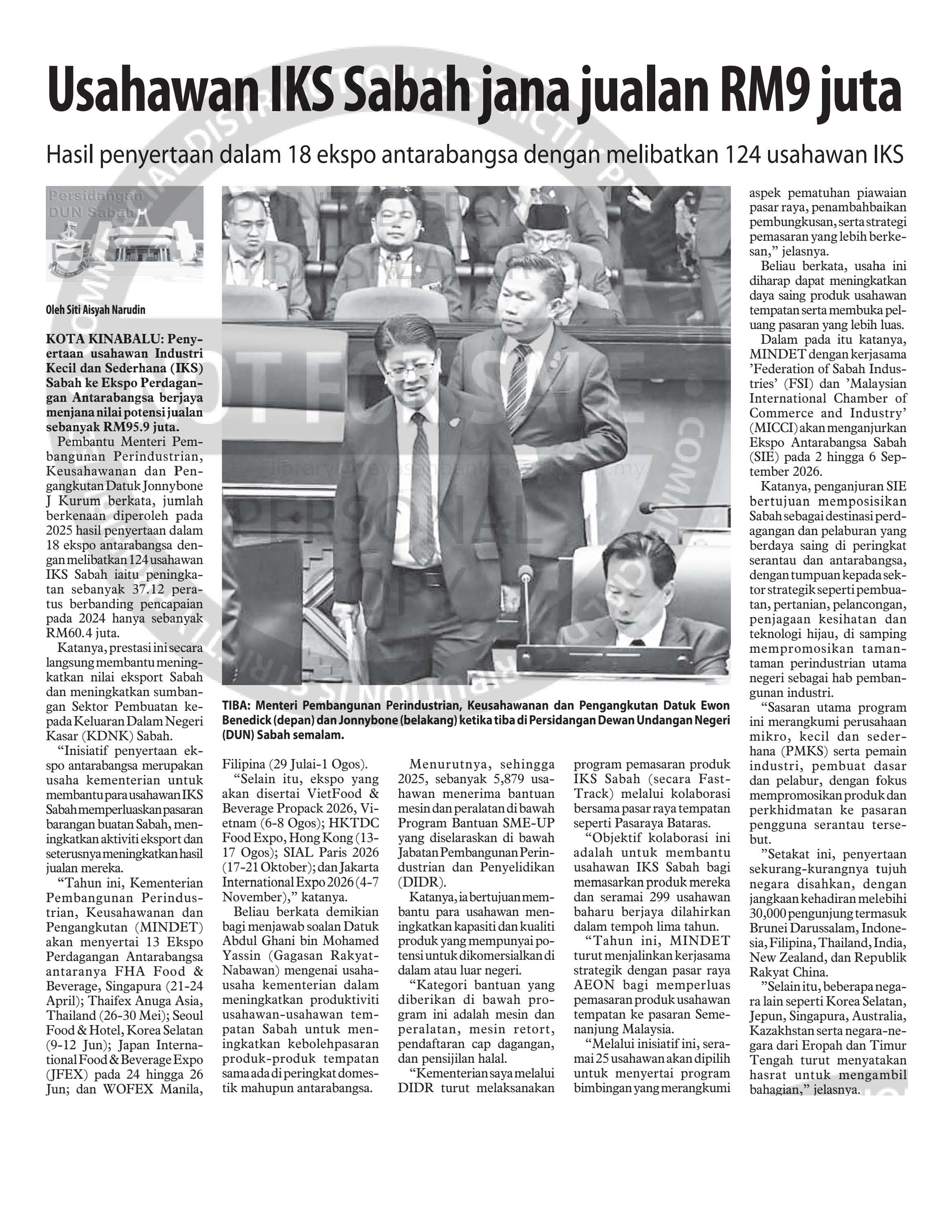 Siti Aisyah Narudin (2026) Usahawan IKS Sabah Jana Jualan RM9 Juta. Utusan Borneo (Sabah). |