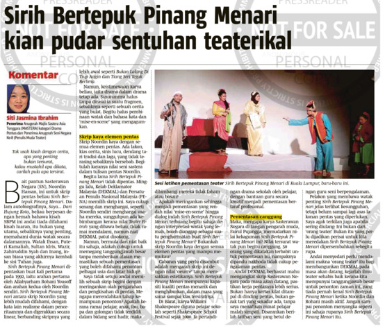 Siti Jasmina Ibrahim (2019) Sirih Bertepuk Pinang Menari kian pudar sentuhan teaterikal. Berita Harian. |