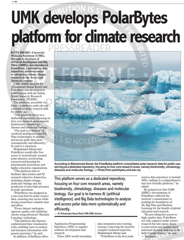 New Straits Times (2025) UMK develops PolarBytes platform for climate research. New Straits Times. |