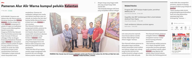 Utusan Borneo (2020) Pameran Alur Alir Warna kumpul pelukis Kelantan. Utusan Borneo. |