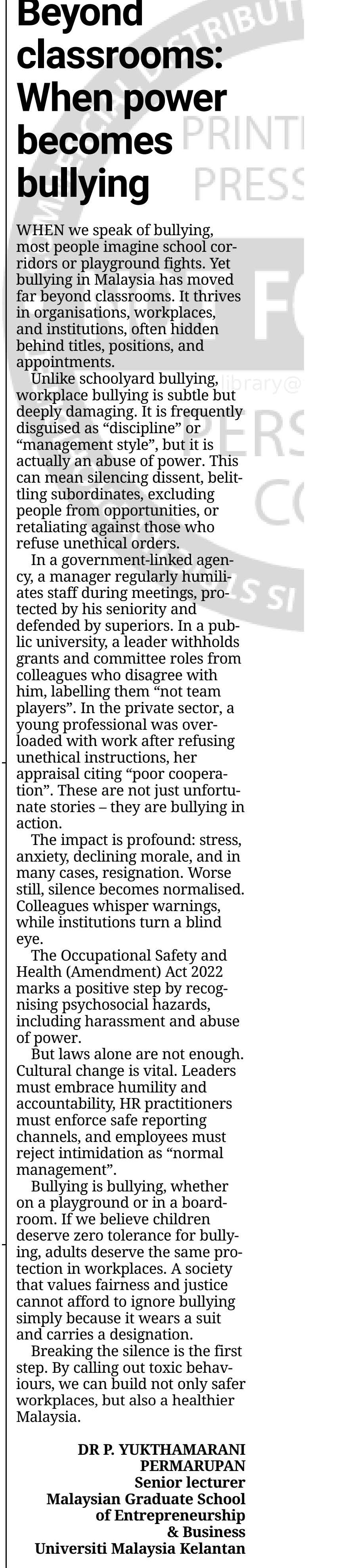 The Star Malaysia (2025) Beyond classrooms: When power becomes bullying. The Star Malaysia. |