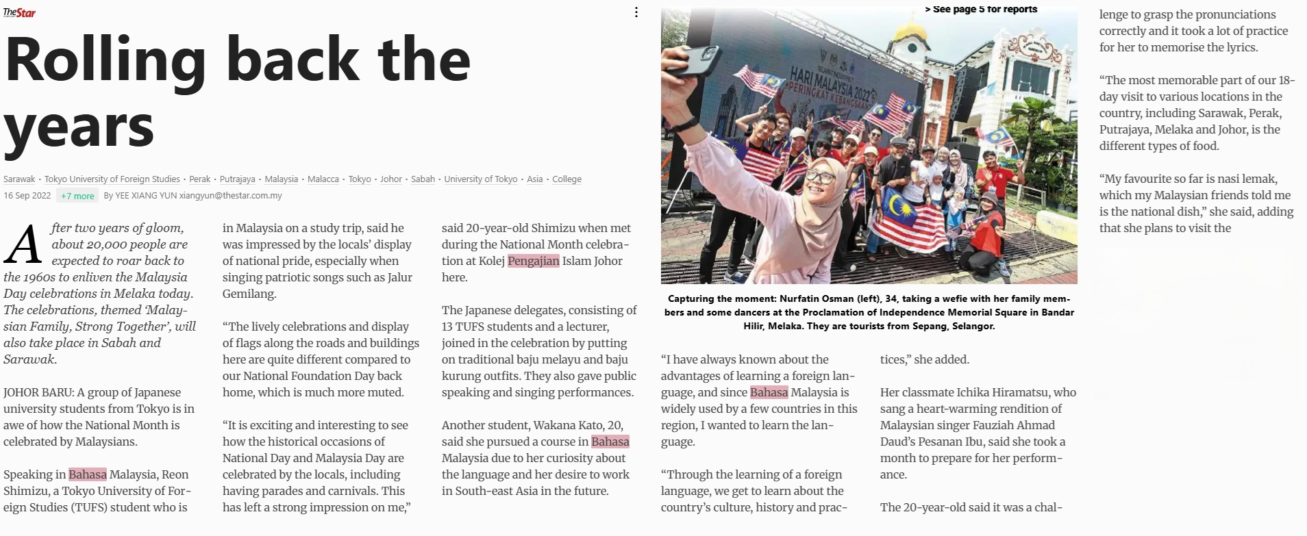 Yee Xiang Yun (2022) Rolling back the years. The Star Malaysia. |