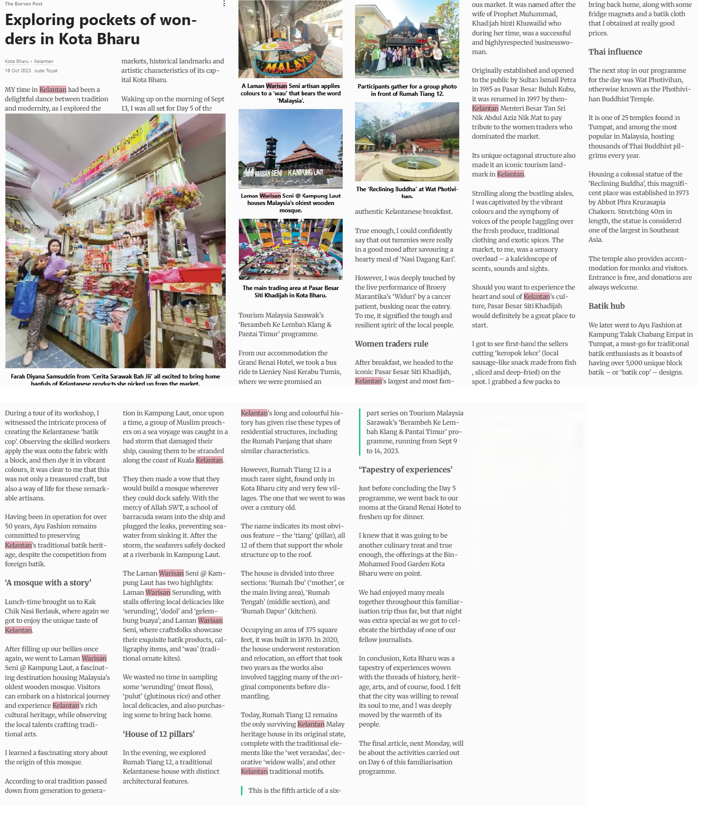Jude Toyat, - Exploring pockets of wonders in Kota Bharu. The Borneo Post. |