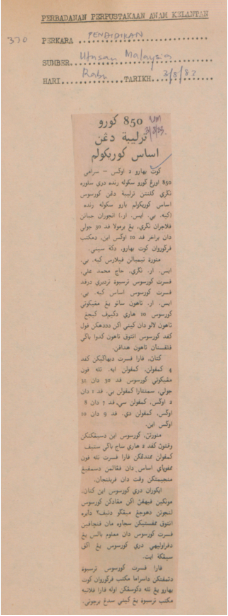 Utusan Malaysia (1983) 850 guru terlibat dengan asas kurikulum. Utusan Malaysia. |