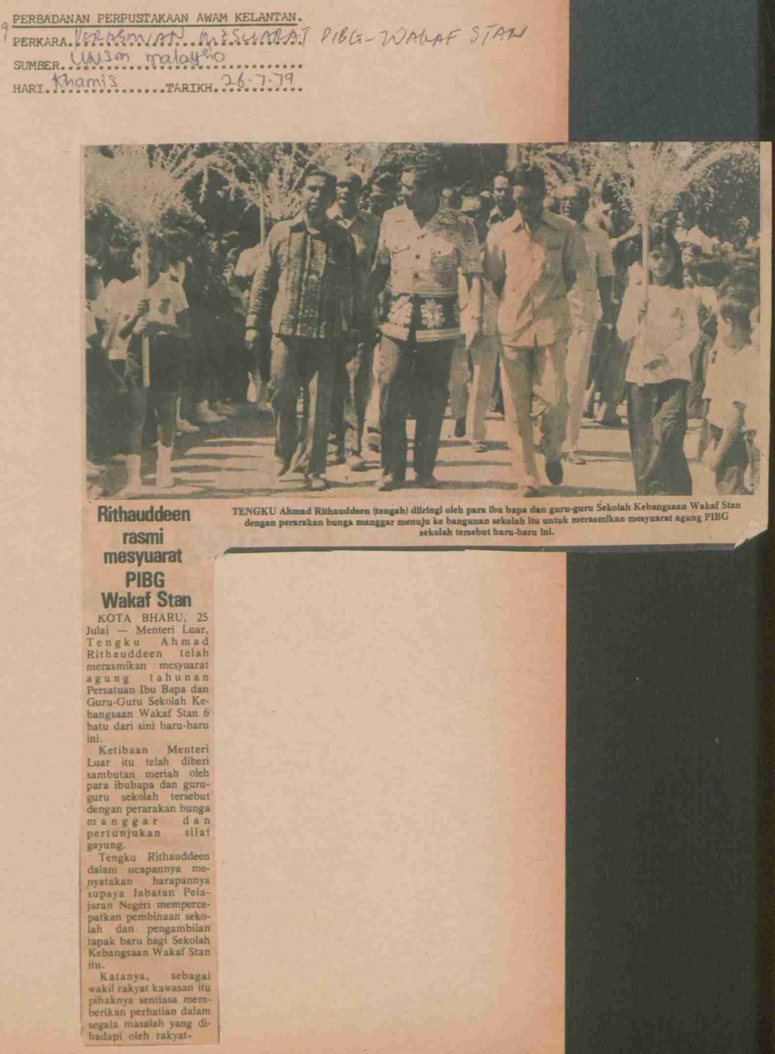 Utusan Malaysia (1979) Rithaudden rasmi mesyuarat PIBG Wakaf Stan. Utusan Malaysia. |