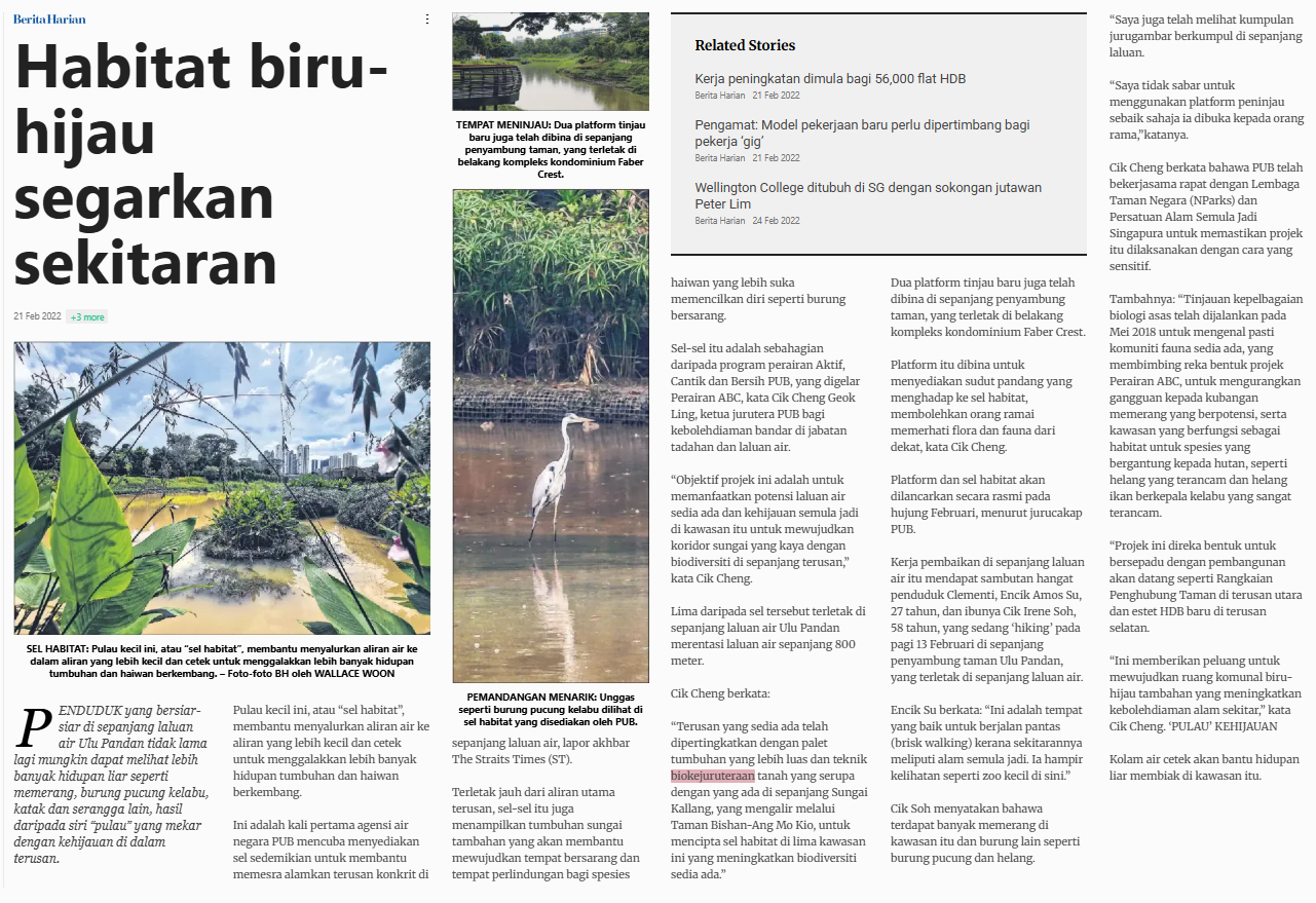 Bernama (2022) Habitat biru-hijau segarkan sekitaran. Berita Harian. |
