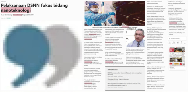 Bernama (2021) Pelaksanaan DSNN fokus bidang nanoteknologi. Berita Harian. |