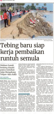 Zaid Salim (2025) Tebing Baru Siap Kerja Pembaikan Runtuh Semula. Berita Harian. |