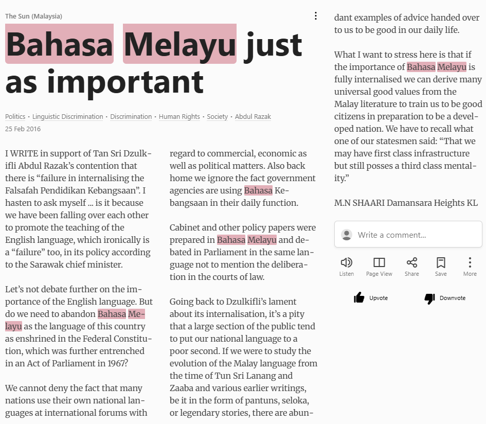 M.N Shaari (2016) Bahasa Melayu just an important. The Sun (Malaysia). |