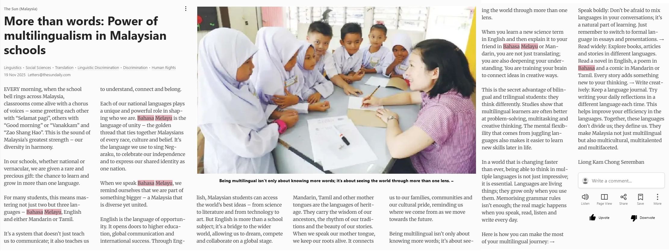 Liong Kam Chong (2025) More than words : power of multilingualism in Malaysian schools. The Sun (Malaysia). |