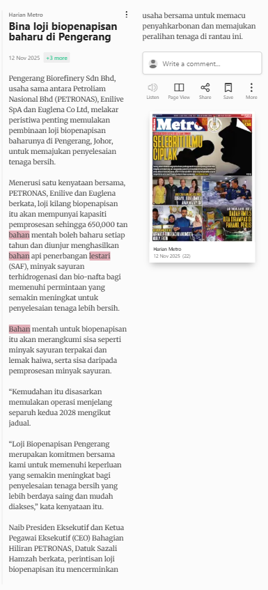 Bernama (2025) Bina loji biopenapisan baharu di Pengerang. Harian Metro. |