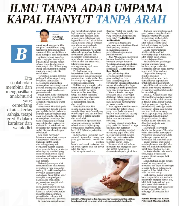 Mohd Rizal Azman Rifin (2025) Ilmu tanpa adab umpama kapal hanyut tanpa arah. Harian Metro. |
