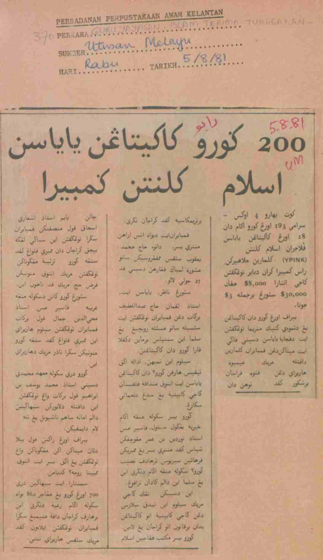 Utusan Melayu (1981) 200 guru kakitangan yayasan Islam Kelantan gembira. Utusan Melayu. |
